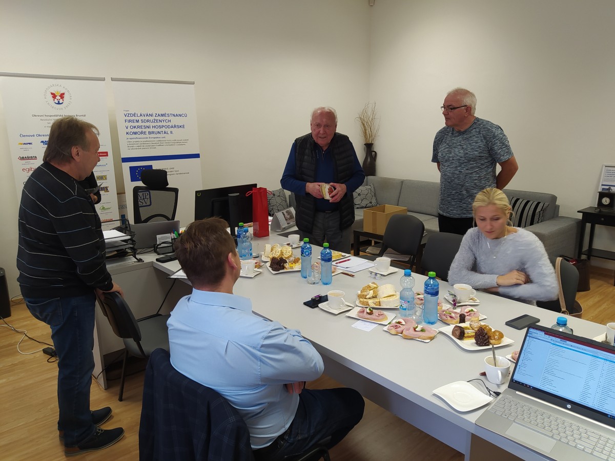 Předseda představenstva pan Květoslav Bašista a všichní přítomni popřáli panu Mročkovi k jeho krásnému životnímu jubileu - 80 let hodně zdraví, štěstí , spokojenosti a především spoustu sil na další cestě životem, zároveň poděkovali za jeho aktivní práci v Okresní hospodářské komoře Bruntál
